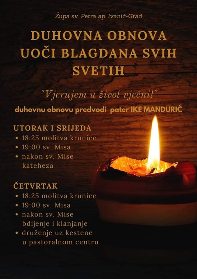 U župi Svih svetih u 17 sati počinje molitveno bdijenje uoči svetkovine Svih svetih. Prigodni program sastoji se od krunice, euharistijskog klanjanja i mise.
