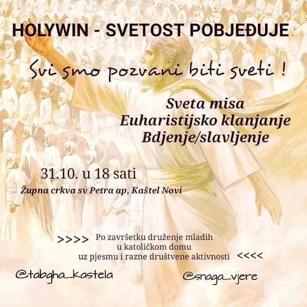 U župi sv. Ćirila i Metoda održat će se program “Holywin” s početkom u 19:30, a sastoji se od mise i euharistijskog klanjanja.